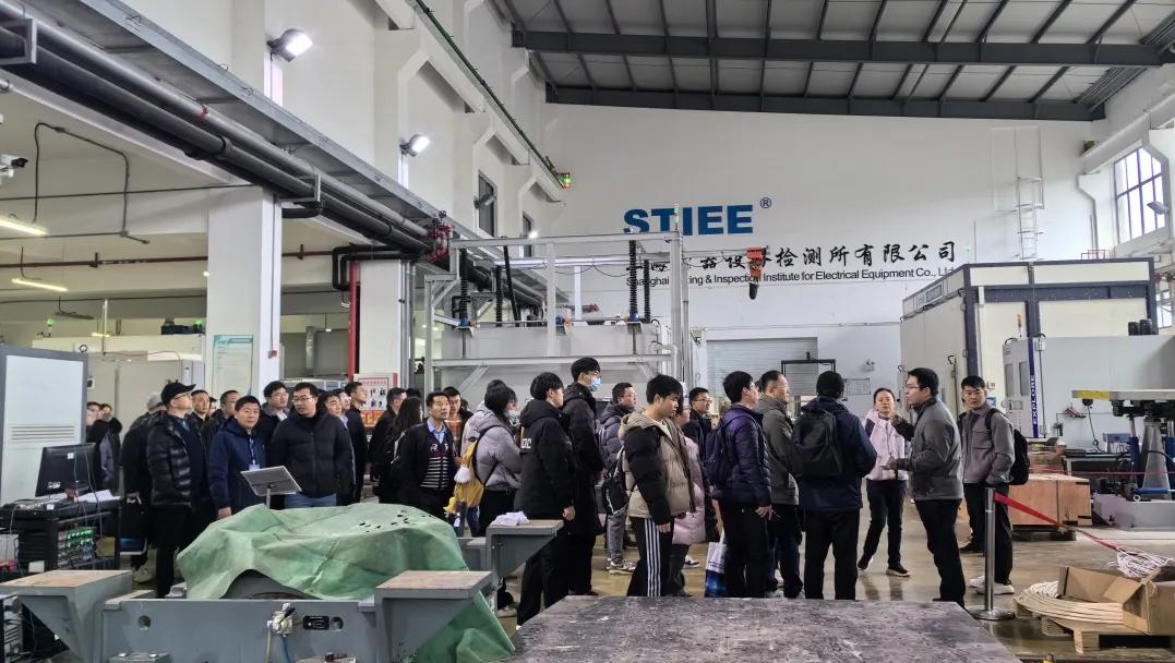 研讨会后,与会人员组织参观上电科汽车电子试验室,先后走进汽车动力电池试验室、电驱动实验室、高压电气零部件试验室、电磁兼容试验室、电性能试验室、环境试验室,了解新能源汽车动力电池测试平台以及电气零部件检测的工作流程。