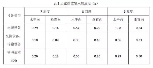 抗震设防烈度为7~9度地区的主要电信设备的抗震性能的考核及评定可参考YD 5083-2005《电信设备抗地震性能检测规范》。