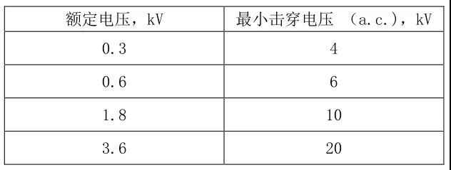 电缆应可以承受 交流10kV 的电压而不会产生闪络现象。