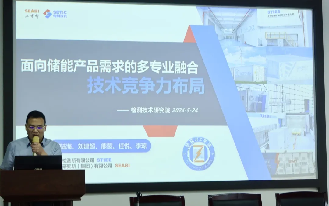 由检测技术研究院技术总监(新能源领域)郑陆海技术团队为主的“储能专项融合组”做了储能产品的资源整合和技术竞争力布局、储能+动力电池、EMC等方向介绍。